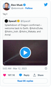 Преди да напуснат МКС, членовете на Crew-5 бяха посрещнати от наследниците на мисията Crew-6, които стартираха на 1 март от Кейп Канаверал.