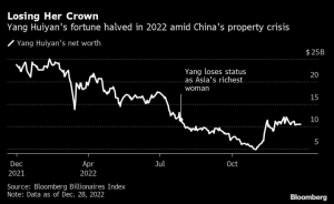 Състоянието на най-богатата жена в Китай се сви наполовина през 2022 г. Графика: Bloomberg