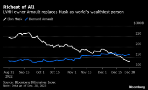 Бернар Арно измести Илон Мъск от позицията на най-богат човек в света. Графика: Bloomberg