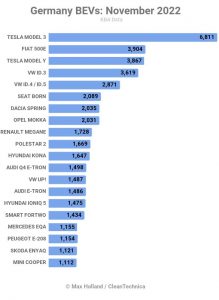 Clean Technica прогнозира общо около 70 хил. продадени електрически коли в Германия за декември и пазарен дял от около 40%.