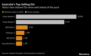 Преди година – на фона на проблемите във веригата на доставки, свързани с анти-Covid мерките в Китай – електромобилите представляваха по-малко от 1% от продажбите на нови автомобили в Австралия. Миналия месец техният дял достигна 6,8%.