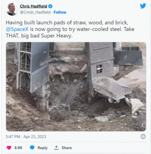 „ Погрешно смятахме, въз основа на данни за статични пожари, че бетонът ще издържи едно изстрелване „, заявява Илон Мъск.
